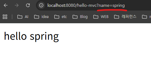 /hello-mvc?name=Spring요청을 보냄 - 톰캣 서버가 요청을 스프링에 전달